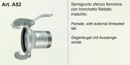 Semigiunto sferico femmina con tronchetto filettato maschio.