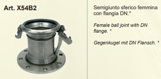 Semigiunto sferico maschio con manicotto da ½” con flangia DN. *